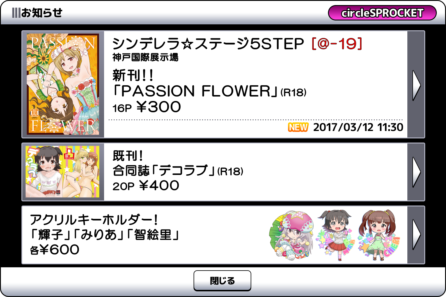 同人サークルSPROCKET(スプロケット)の活動情報サイトです。 二次創作を扱っておりますので、同人活動にご理解くださった上でご覧ください。